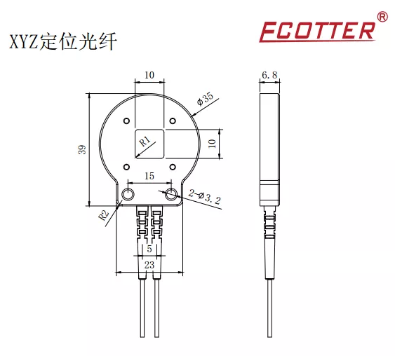 這款光纖是由2組纖芯直徑為Φ0.25mm的光纖線組成,需要使用2個(gè)光纖放大器配合工作。最小可以定位直徑Φ0.25mm的物體。