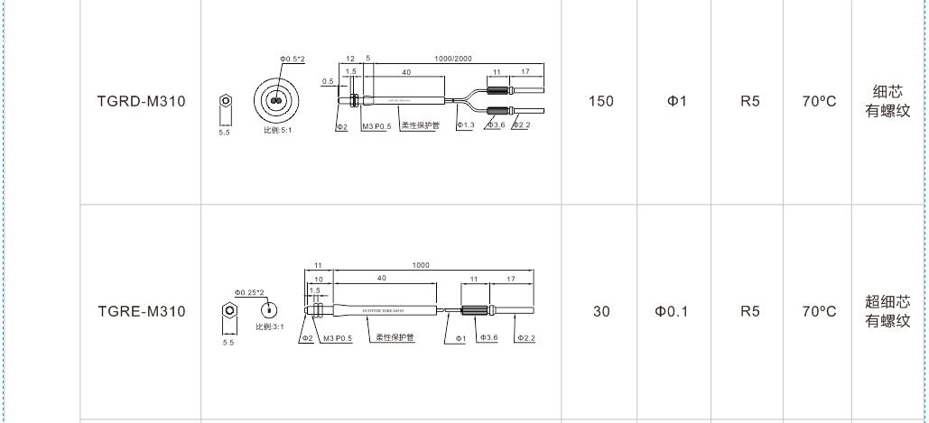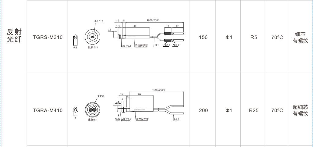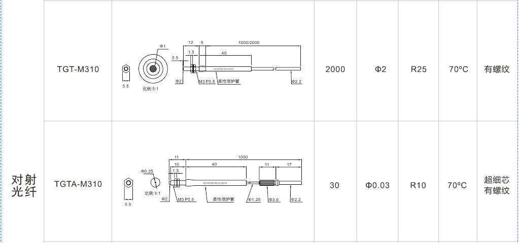 有螺紋無凸管系列光纖